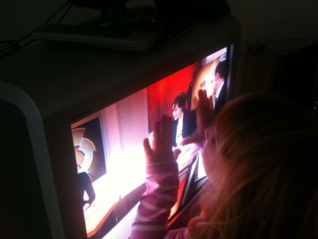 Lea schaut eine Aufzeichnung von ATV AmPunkt. Lea schaut den Fernseher an und sagt „Hallo Mama“. Papa: „sie hört dich nicht“. Lea: „Sie hat aber zu mir hergeschaut“.