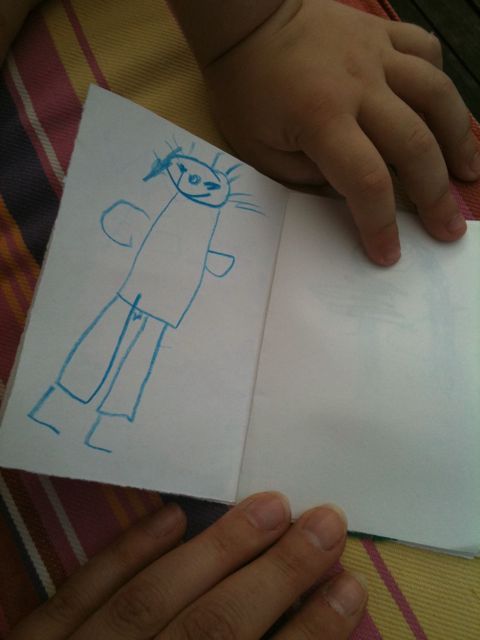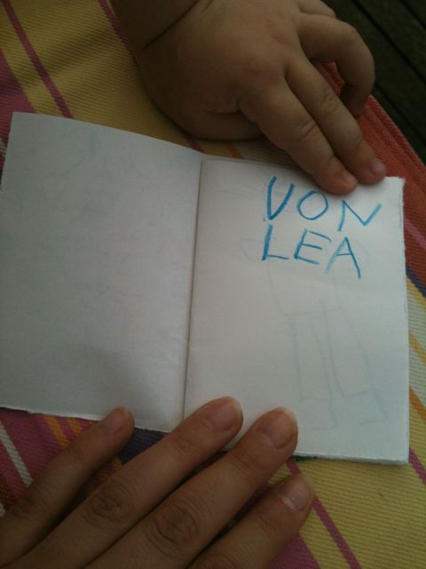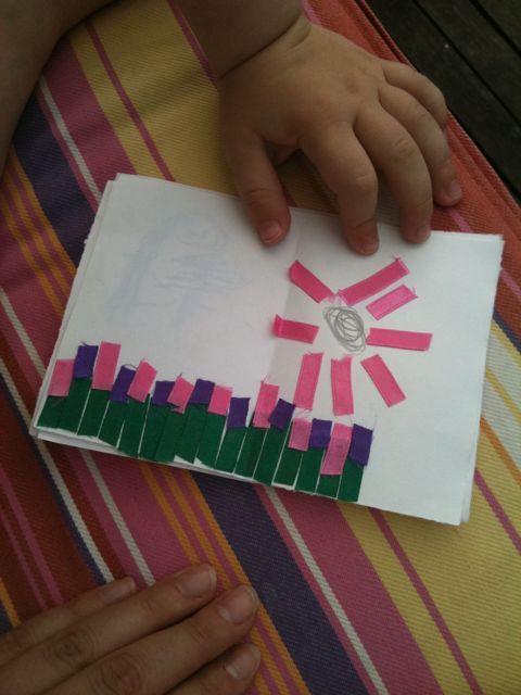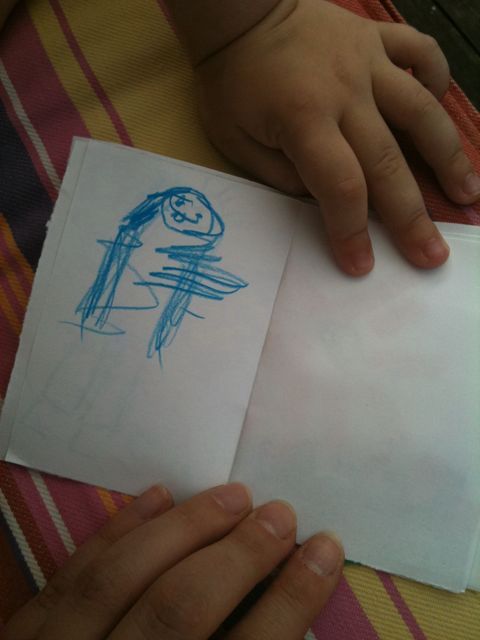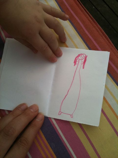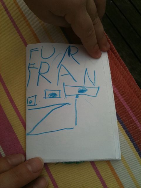 Heute habe ich mit Mama ein Buch für Franziskas 4. Geburtstag gezeichnet und geklebt.