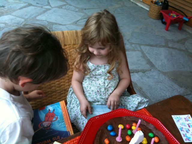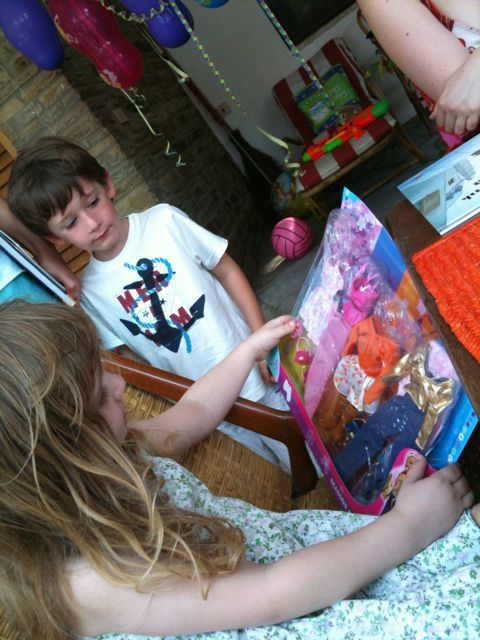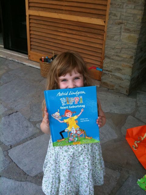 Meinen Geburtstag haben wir auch heuer wieder in Italien gefeiert: Mama hat einen Schokokuchen nach dem Lisl-Rezept gebacken mit Smarties und ich habe viele Geschenke bekommen: Eine Barbiepuppe und einen Ken, und Kleider dazu. Einen Reitstall mit 2 Pferden und ein Pippin-Lamgstrumpf-Buch!