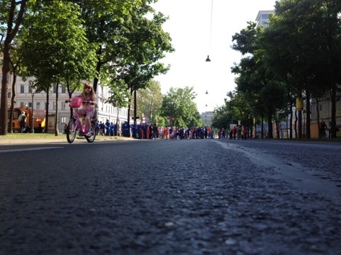 …und ich radle mit meinem Papa ins Weiße Lokal für ein Frühstück.