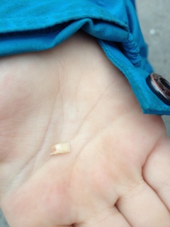 So lange hat er gewackelt, jetzt ist er endlich draußen, mein erster Zahn! Der neue kommt schon seit einiger Zeit nach. Und in der Nacht war die Zahnfee da und hat mir einen goldenen Elefanten geschenkt.