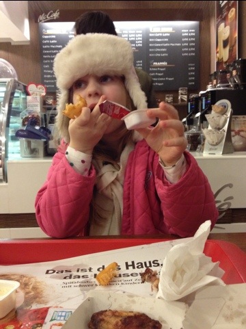 Mit Papa war ich heute den ganzen Nachmittag in der Therme Wien, danach waren wir bei McDonalds, das erste Mal. Papa war, glaub ich, aufgeregter als ich…