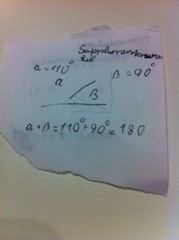 Gestern in der Schule habe ich mit Olivia und Dario Komplementärwinkel gerechnet. Mama hat sich auch noch an Alpha und Beta erinnern können.